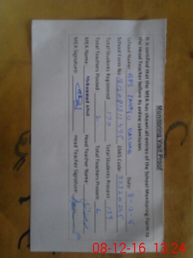 | Certified that this School was Inspected by the Undersigned MEA/DMO Today and the Information Stated Above is as Per Record. | |||||