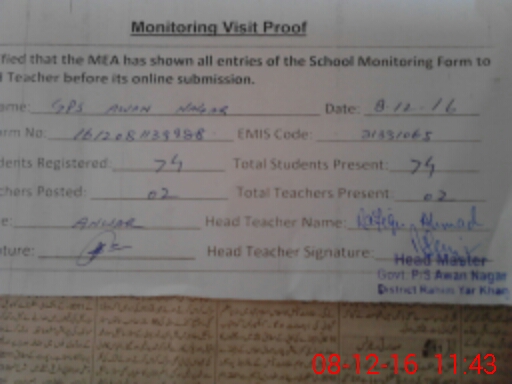 | EMIS Code: 31331065 | Name of School: GPS AWAN NAGAR | |||