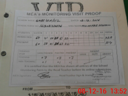 | Attendance Register | Head Teacher | MEA with School | Visit Proof |