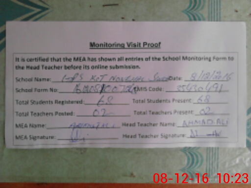 | Certified that this School was Inspected by the Undersigned MEA/DMO Today and the Information Stated Above is as Per Record. | |||||