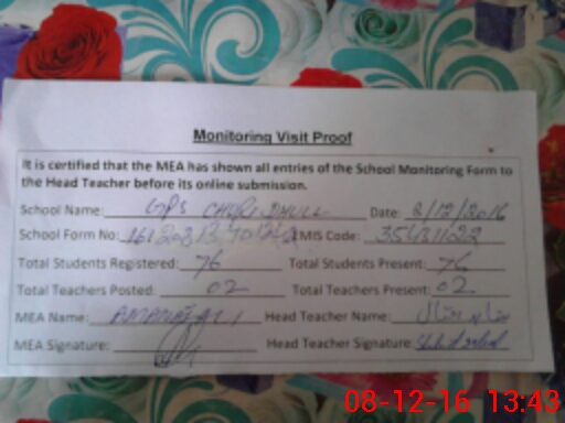 | Certified that this School was Inspected by the Undersigned MEA/DMO Today and the Information Stated Above is as Per Record. | |||||