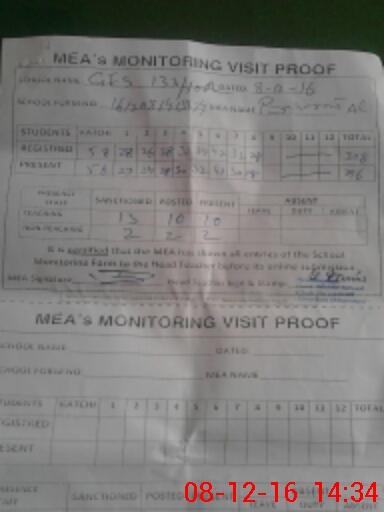 | Attendance Register | Head Teacher | MEA with School | Visit Proof |