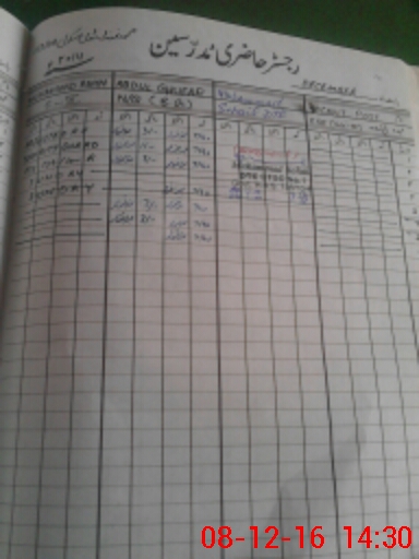 | CNIC | Full Name | Designation | R/C | Absence During Last Calender Month |