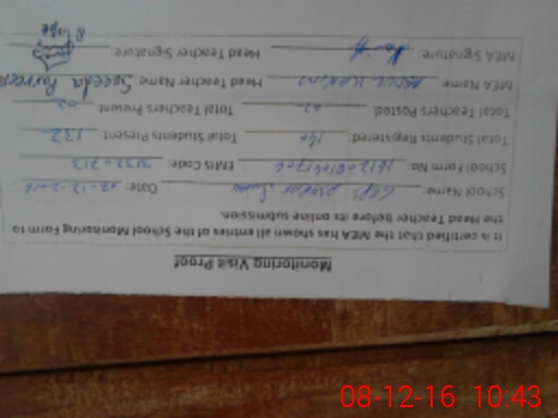 | Attendance Register | Head Teacher | MEA with School | Visit Proof |