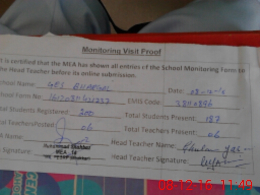| Certified that this School was Inspected by the Undersigned MEA/DMO Today and the Information Stated Above is as Per Record. | |||||