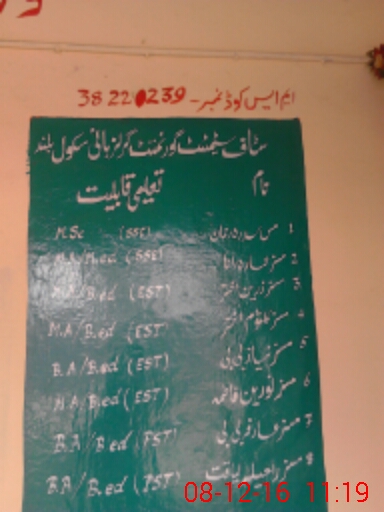 | District: KHUSHAB | Tehsil: NOORPUR THAL | Markaz: RANGPUR BAGHOOR (FEMALE) | Level: High | |