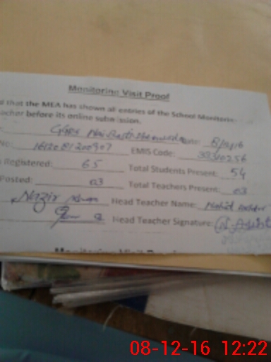 | Attendance Register | Head Teacher | MEA with School | Visit Proof |