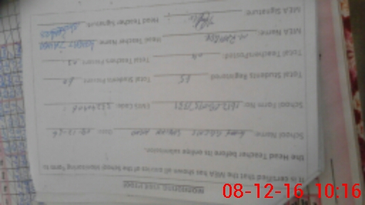 | Name: IR**** BE**** Designation: (School Headmaster's/Headmistress's) PST Phone/Cell Number: 03**** |