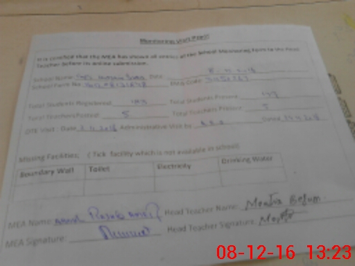 | Attendance Register | Head Teacher | MEA with School | Visit Proof |