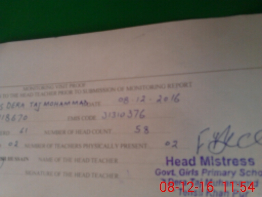 | EMIS Code: 31310376 | Name of School: GGPS DERA TAJ MUHAMMAD | |||