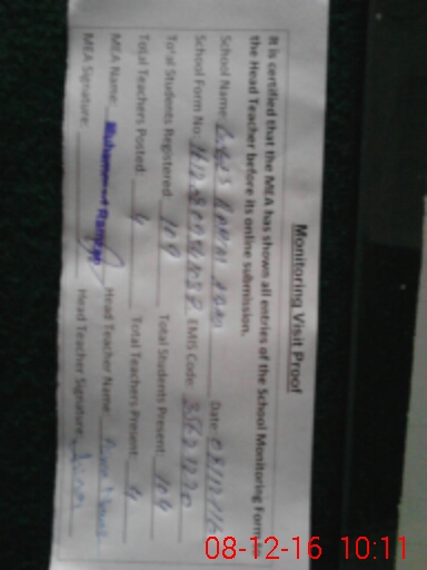 | Certified that this School was Inspected by the Undersigned MEA/DMO Today and the Information Stated Above is as Per Record. | |||||