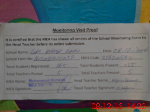 | Certified that this School was Inspected by the Undersigned MEA/DMO Today and the Information Stated Above is as Per Record. | |||||