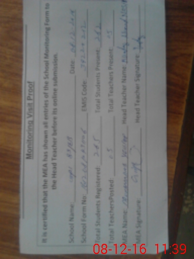 | Certified that this School was Inspected by the Undersigned MEA/DMO Today and the Information Stated Above is as Per Record. | |||||