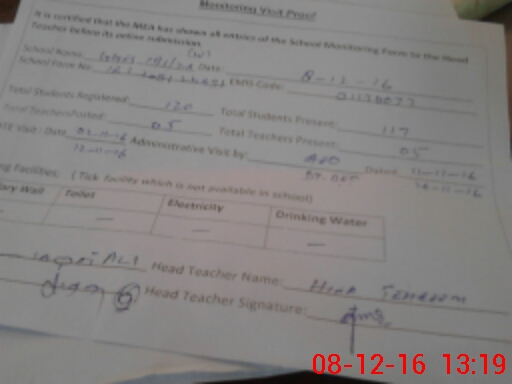| Attendance Register | Head Teacher | MEA with School | Visit Proof |