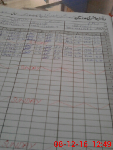 | CNIC | Full Name | Designation | R/C | Absence During Last Calender Month |