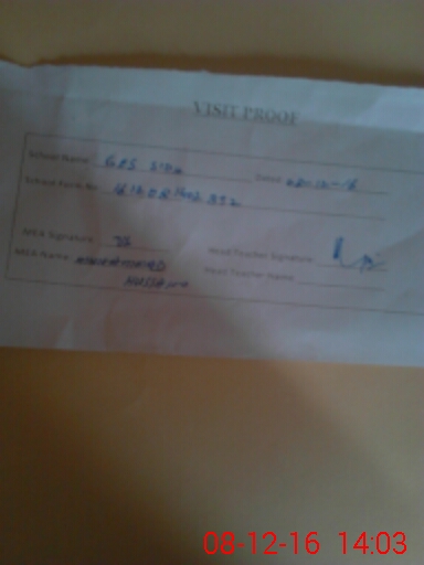 | Attendance Register | Head Teacher | MEA with School | Visit Proof |
