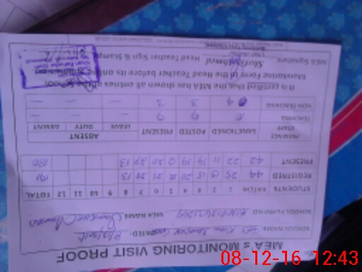 | Attendance Register | Head Teacher | MEA with School | Visit Proof |