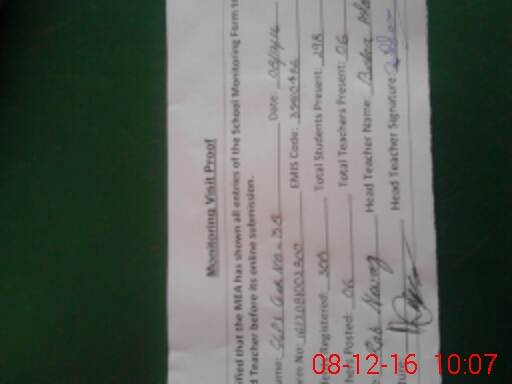 | Attendance Register | Head Teacher | MEA with School | Visit Proof |