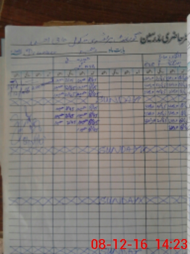 | CNIC | Full Name | Designation | R/C | Absence During Last Calender Month |