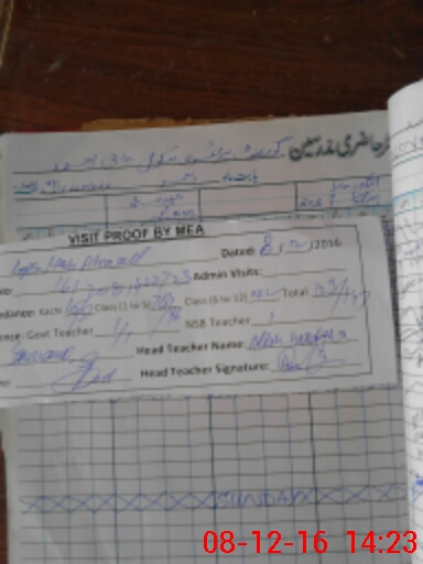 | Attendance Register | Head Teacher | MEA with School | Visit Proof |
