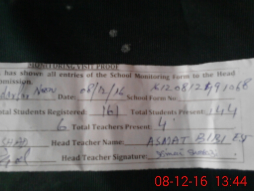 | Attendance Register | Head Teacher | MEA with School | Visit Proof |