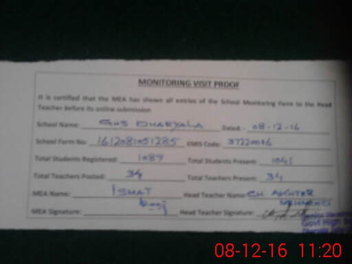 | EMIS Code: 37220016 | Name of School: GHS DHARYALA JALIB | |||
