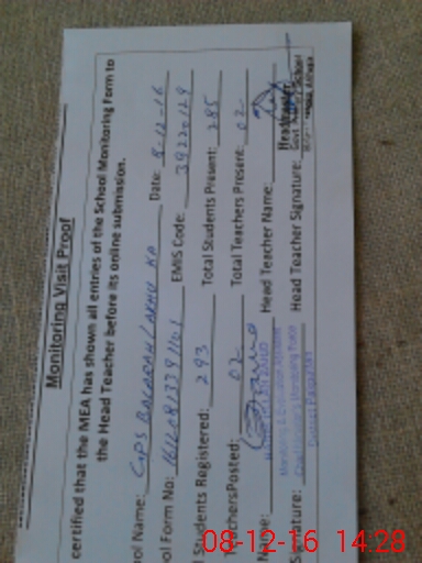 | Attendance Register | Head Teacher | MEA with School | Visit Proof |