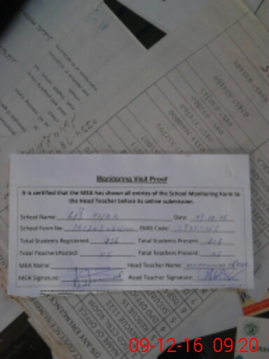 | Attendance Register | Head Teacher | MEA with School | Visit Proof |