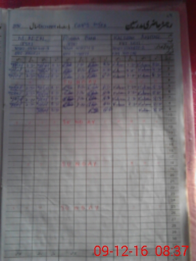 | CNIC | Full Name | Designation | R/C | Absence During Last Calender Month |