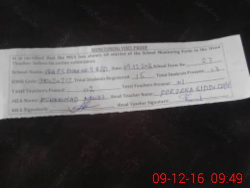 | Certified that this School was Inspected by the Undersigned MEA/DMO Today and the Information Stated Above is as Per Record. | |||||