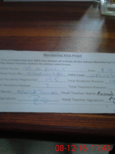 | Attendance Register | Head Teacher | MEA with School | Visit Proof |