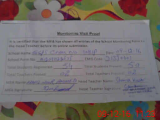 | EMIS Code: 31330601 | Name of School: GGPS CHAK NO. 108/P | |||