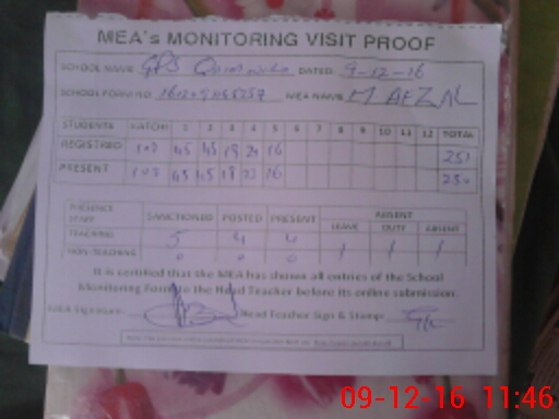| Certified that this School was Inspected by the Undersigned MEA/DMO Today and the Information Stated Above is as Per Record. | |||||