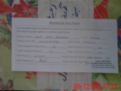 | Attendance Register | Head Teacher | MEA with School | Visit Proof |