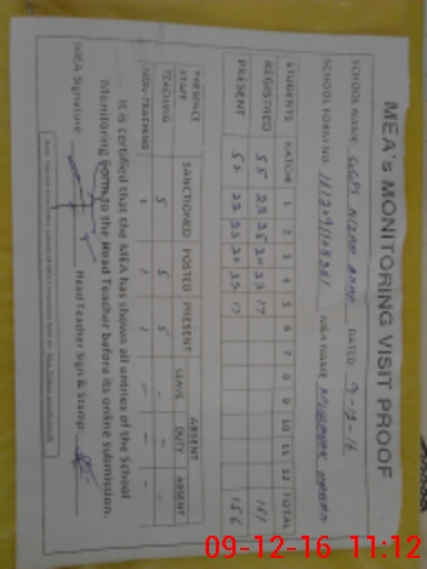 | Certified that this School was Inspected by the Undersigned MEA/DMO Today and the Information Stated Above is as Per Record. | |||||
