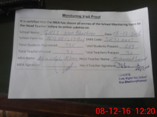 | EMIS Code: 38320001 | Name of School: GHSS WAN BHACHRAN | |||