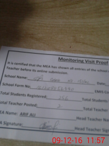 | Certified that this School was Inspected by the Undersigned MEA/DMO Today and the Information Stated Above is as Per Record. | |||||