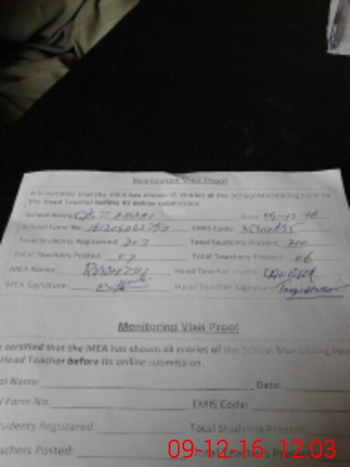 | Attendance Register | Head Teacher | MEA with School | Visit Proof |