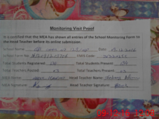 | Certified that this School was Inspected by the Undersigned MEA/DMO Today and the Information Stated Above is as Per Record. | |||||