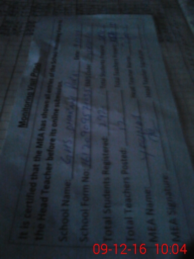 | Attendance Register | Head Teacher | MEA with School | Visit Proof |