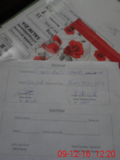 | Attendance Register | Head Teacher | MEA with School | Visit Proof |
