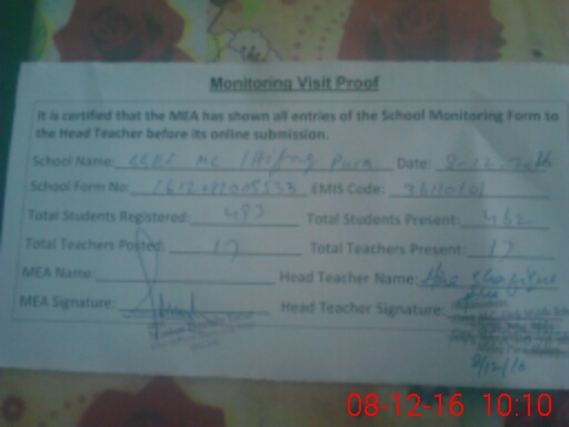 | Certified that this School was Inspected by the Undersigned MEA/DMO Today and the Information Stated Above is as Per Record. | |||||