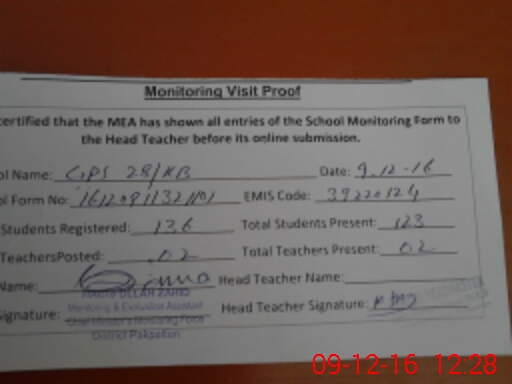 | EMIS Code: 39220124 | Name of School: GPS CHAK NO. 28 KB | |||