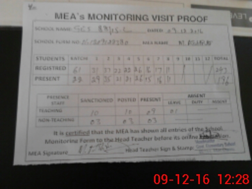 | Attendance Register | Head Teacher | MEA with School | Visit Proof |