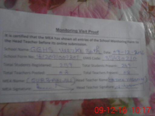 | EMIS Code: 35430210 | Name of School: GGHS VEERKA BATH | |||