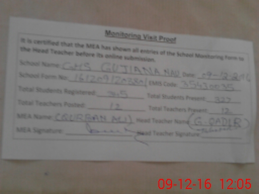 | EMIS Code: 35430035 | Name of School: GHS GUJIANA NAU | |||