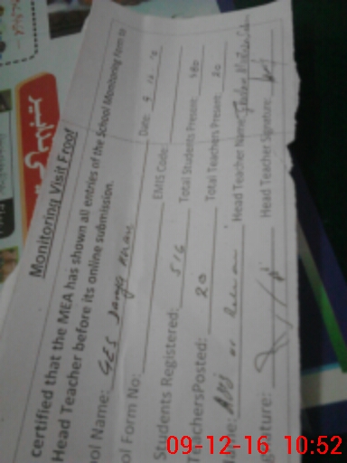 | Attendance Register | Head Teacher | MEA with School | Visit Proof |