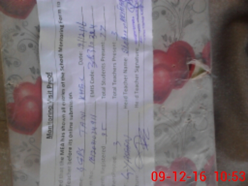 | Attendance Register | Head Teacher | MEA with School | Visit Proof |