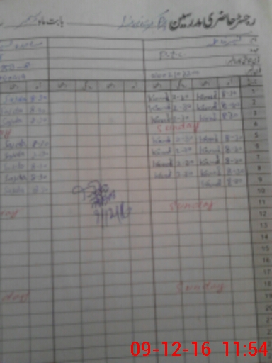 | CNIC | Full Name | Designation | R/C | Absence During Last Calender Month |