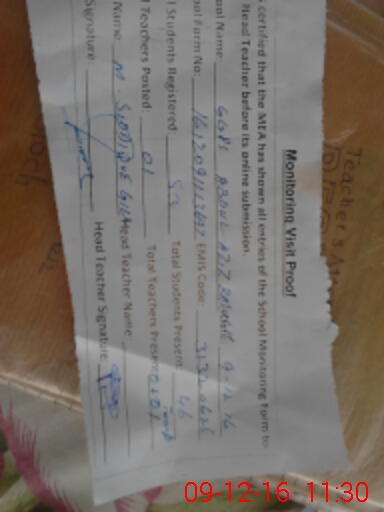 | Attendance Register | Head Teacher | MEA with School | Visit Proof |